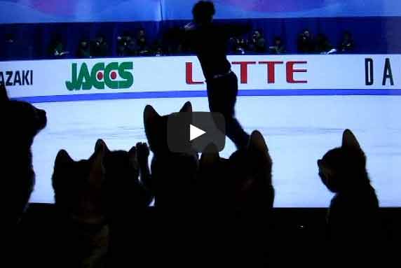 Tutti i gattini sono presi dalle piroette dei professionisti dei pattini, si divertono e seguono con attenzione tutte le mosse, incredibile come sono affascinati dal movimento dei concorrenti in gara.