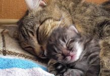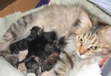 Mamma gatta felice e premurosa coccola i propri 5 mici! [VIDEO]